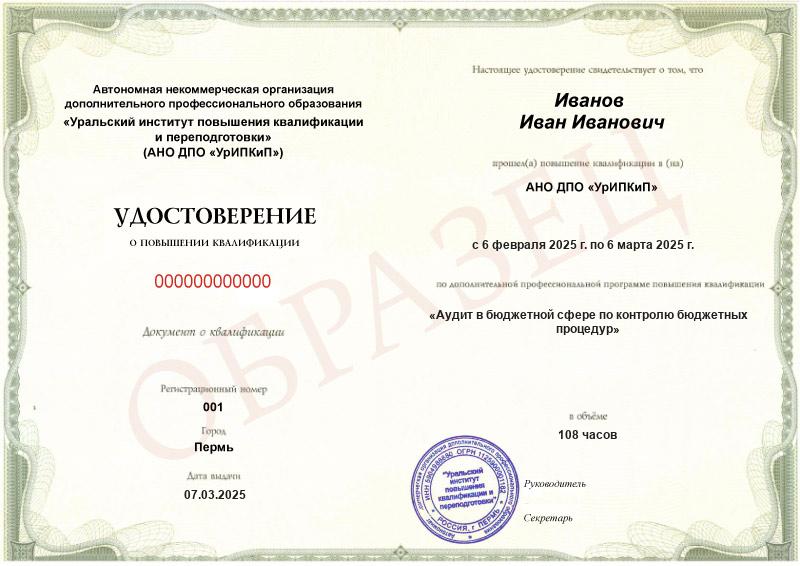 Курс обучения Аудит в бюджетной сфере по контролю бюджетных процедур (108ч)