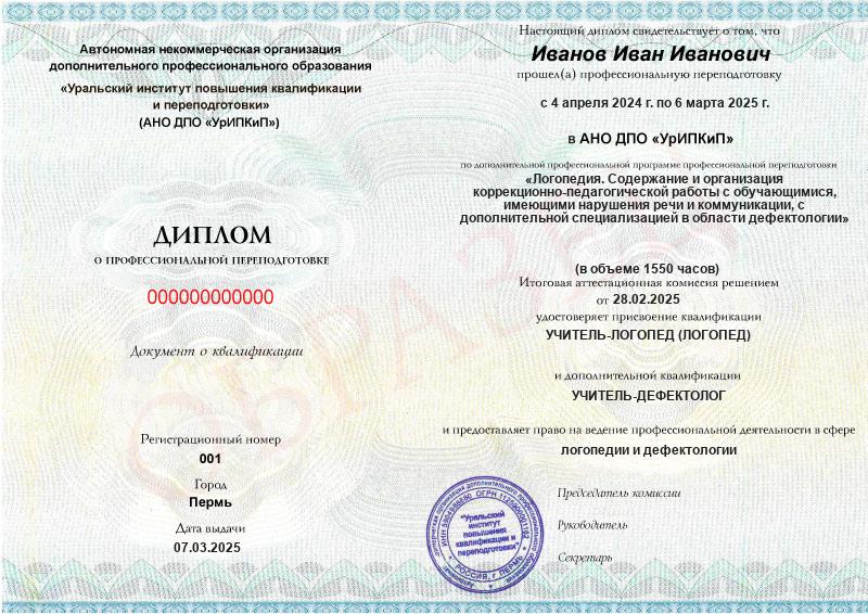 Да, дипломы и удостоверения оформляются в соответствии с действующим законодательством РФ. Документы печатаются на специальных бланках, заверяются печатью АНО ДПО «УрИПКиП».
