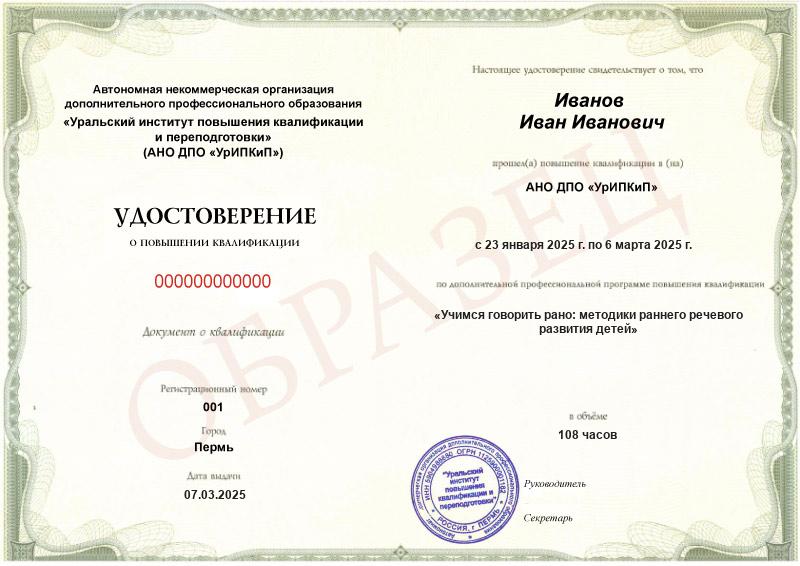• Повышали квалификацию в АНО ДПО «УрИПКиП» – вам будет выдано удостоверение.