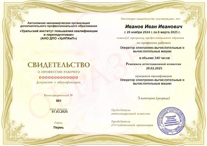 Заполненные образцы выдаваемых документов есть в описании учебных курсов и на странице «Лицензия. Документы», а также на главной странице официального сайта АНО ДПО «УрИПКиП».